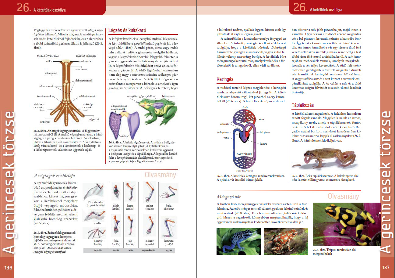 valamint az élőlények testfelépítésének és környezetének kapcsolata. A fejezetek elején található olvasmányok az érdeklődés felkeltését célozzák meg, illetve a fejezet témájához kapcsolódó problémákat mutatnak be. A tananyag megtanulását és megértését nagyszámú magyarázó ábra és fénykép is segíti.